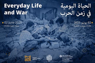 You are invited to a webinar discussion on "Everyday Life and War" on June 2 at 3 pm Cairo. Arabic interpretation is available.